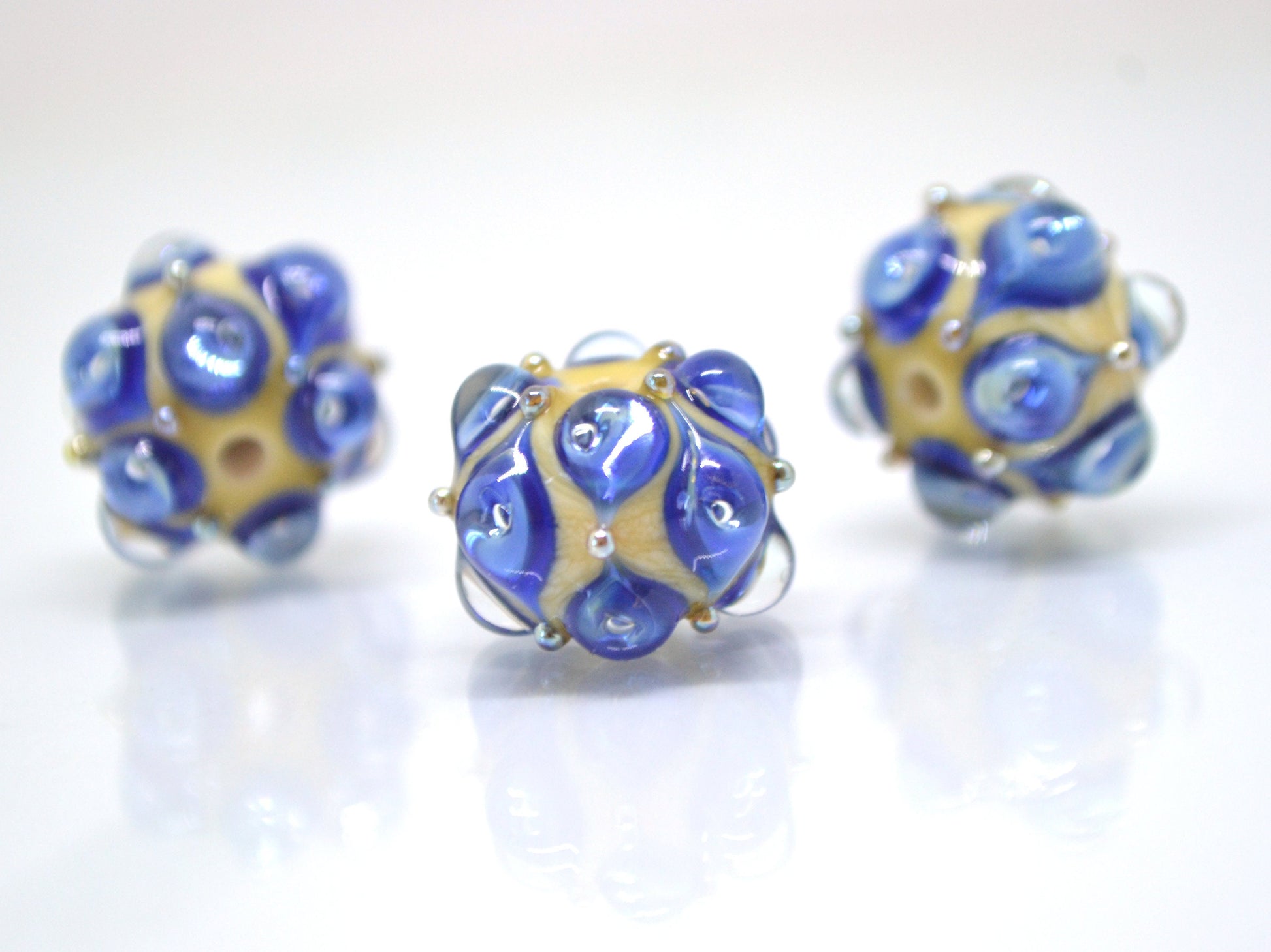 Check out our beautiful Blue Beige Handmade Glass Beads, each one is 15 mm in size. These beads are crafted by Ukrainian artisans from Oliverstar studio and feature a beautiful Deep Blue design. Perfect for making stylish necklaces, these beads add a touch of sophistication to your handmade jewelry projects.