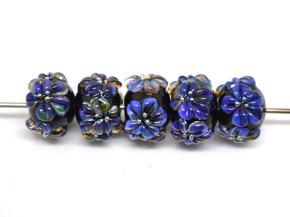 Dark lavender flower beads look unusual. Rondelle flower beads are perfect for making bracelets. Also, you can use these Black blue glass beads as Spacer flower beads. Rondelle lampwork is good for making earrings.