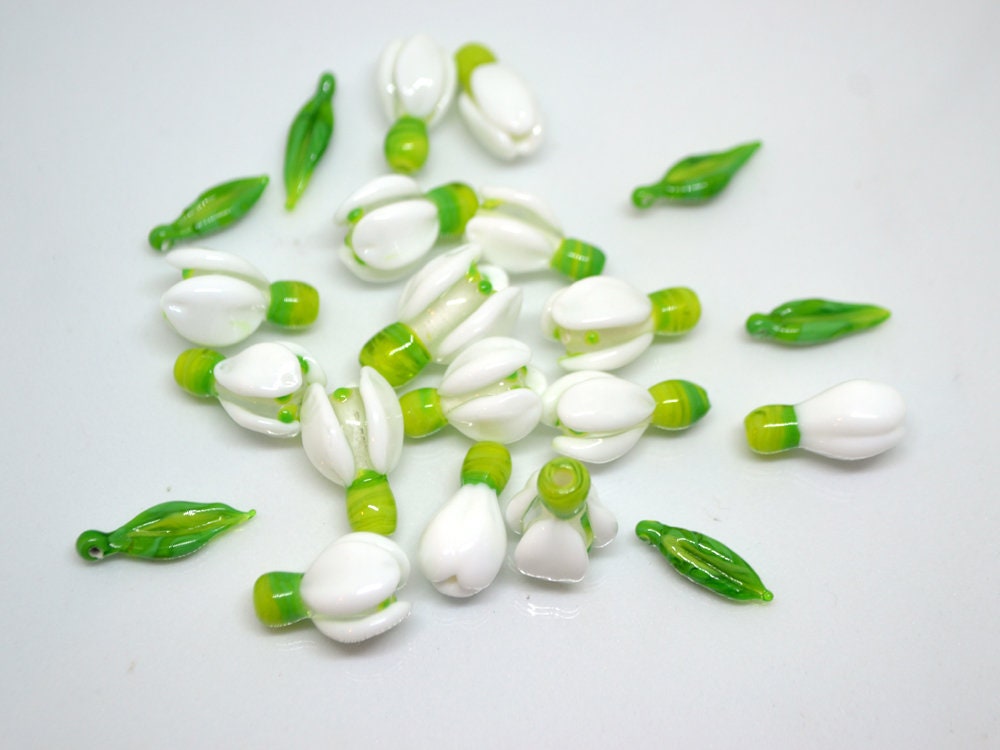 Lampwork snowdrop flower beads are so beautiful. These White glass beads look so real. Floral lampwork beads are great for making really tender jewelry items. These white and green glass flowers are perfect for making earrings, bracelets or necklaces. We make Spring beads and Nature inspires us. Artisan lampwork is best choice for any craft idea.