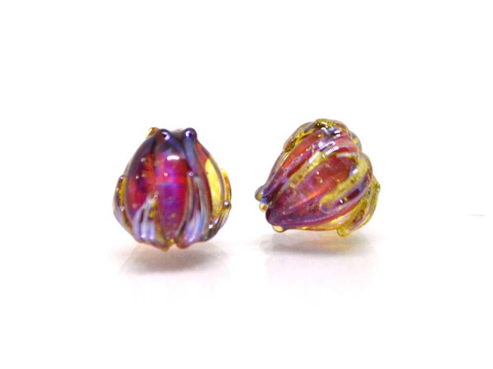 Magenta purple flower beads look amazing. The magic color of these Glass floral beads mesmerizing. These Fuchsia pink glass beads with netting patterns are perfect for making a necklace, earrings or bracelet. These Lampwork flower beads have size 7mm. Artisan lampwork is great supply for any jewelry project.