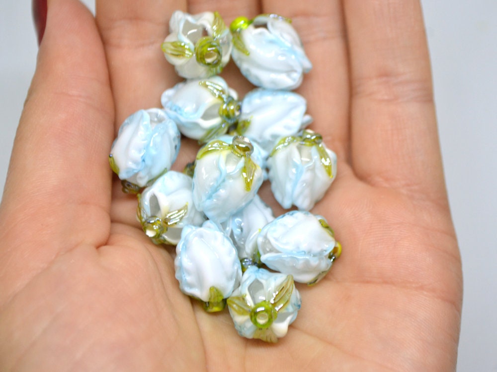 Pale blue glass beads are so sophisticated. Lampwork flower beads look like real flowers. You can use these Sky blue beads for making wedding jewelry. These White blue glass beads are perfect for making bridal earrings - your "something blue" element of your wedding image. Romantic lampwork beads look awesome. Artisan lampwork is the best supply for jewelry making.