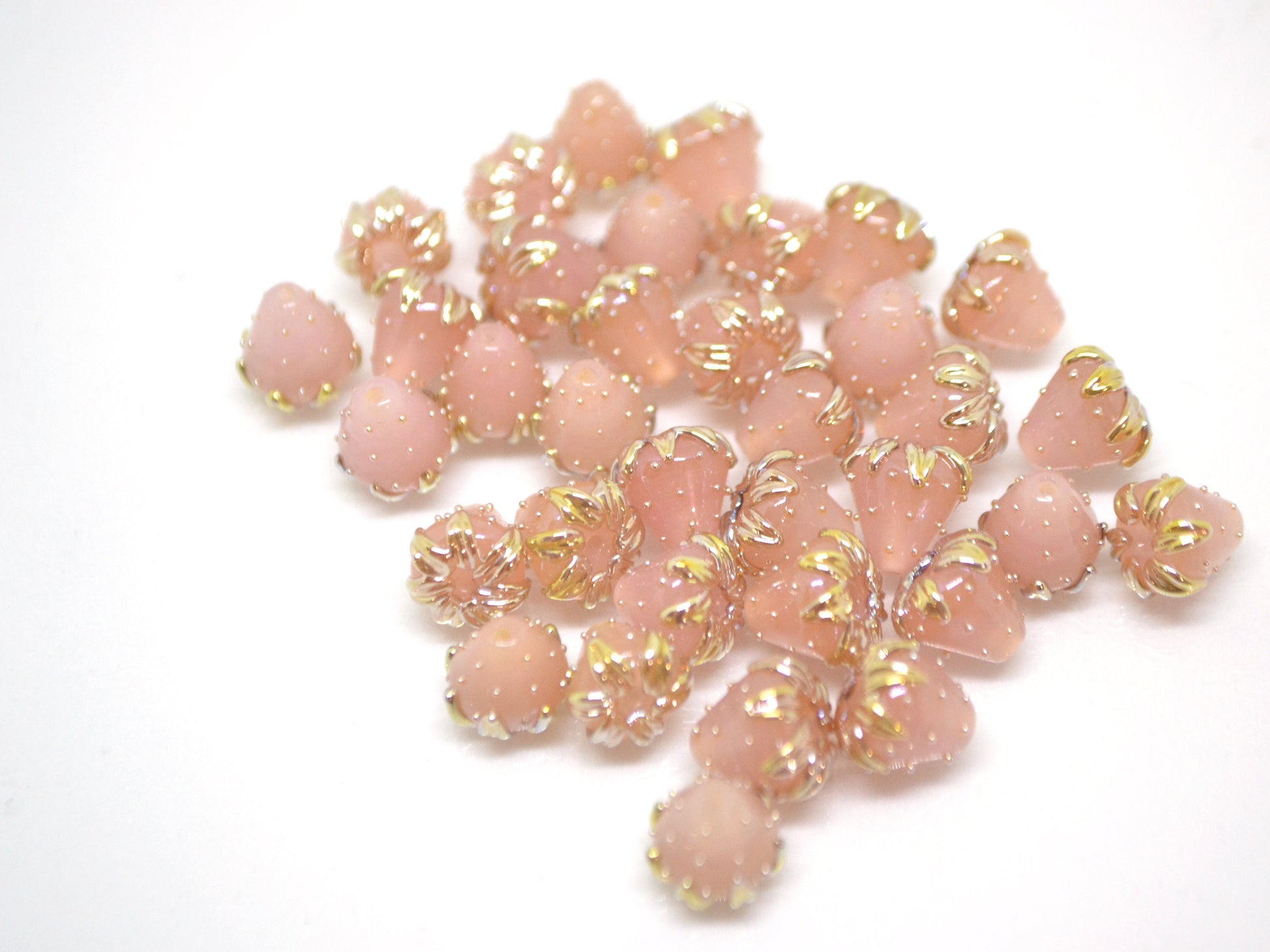 Pink floral beads with gold leaves look uncredible. Tiny glass beads are so cute. These pink 7mm flower beads are perfect for any your jewelry project. Handmade lampwork is an ideal choice for making handmade jewelry.
