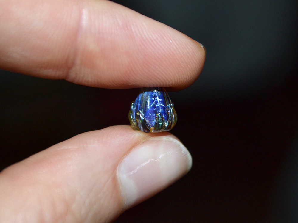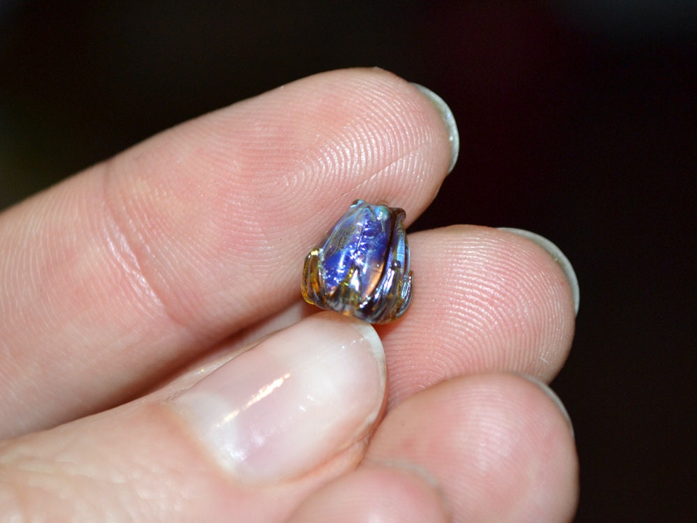 Purple green flower beads are pretty amazing. These Purple yellow floral beads have a Netting pattern. You may use these 7mm glass beads for making earrings, necklaces, bracelets. We can make Tiny flower beads of any color. Artisan lampwork beads are the perfect supply for any jewelry project.